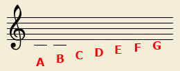 Uit de vorige les weten we al waar (met de G-sleutel) de G ligt, namelijk op de tweede lijn. Als we dan terug gaan tellen, zijn dit de noten A tot en met G: